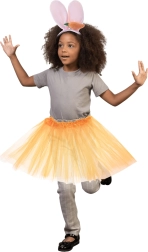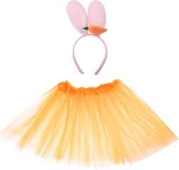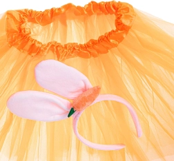Zawiera pomarańczową spódniczkę tutu oraz opaskę z uszkami i marchewką.