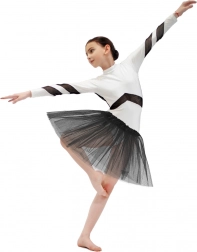 Pas jest obszyty satynową wstążką w kolorze spódniczki dla przyjemniejszego dotyku i ładniejszego wyglądu. Spódniczka nie ma podszewki – polecamy łączyć ją z kryjącymi rajstopami lub legginsami, tak jak robią to baletnice.