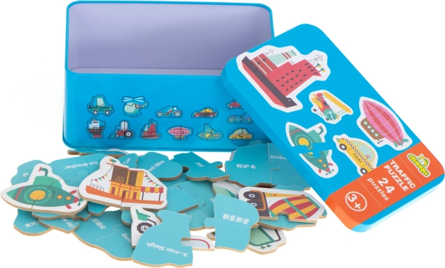 Puzzle są praktyczne do przechowywania i transportu dzięki metalowemu pudełku, co jest idealne na podróże. Ten produkt jest nie tylko zabawny, ale także edukacyjny i wspiera rozwój dzieci.