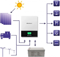 Hybrydowy falownik solarny pozwala połączyć instalację fotowoltaiczną, magazyn energii i sieć energetyczną, co gwarantuje nieprzerwane dostawy energii dla Twoich urządzeń.