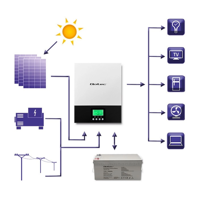 Dzięki technologii MPPT urządzenie efektywnie wykorzystuje maksymalną możliwą ilość energii z paneli fotowoltaicznych, co zwiększa sprawność nawet przy mniej sprzyjających warunkach pogodowych. Wyświetlacz LCD pokazuje kluczowe dane i ostrzega przy przekroczeniu parametrów, aby chronić system przed uszkodzeniem.