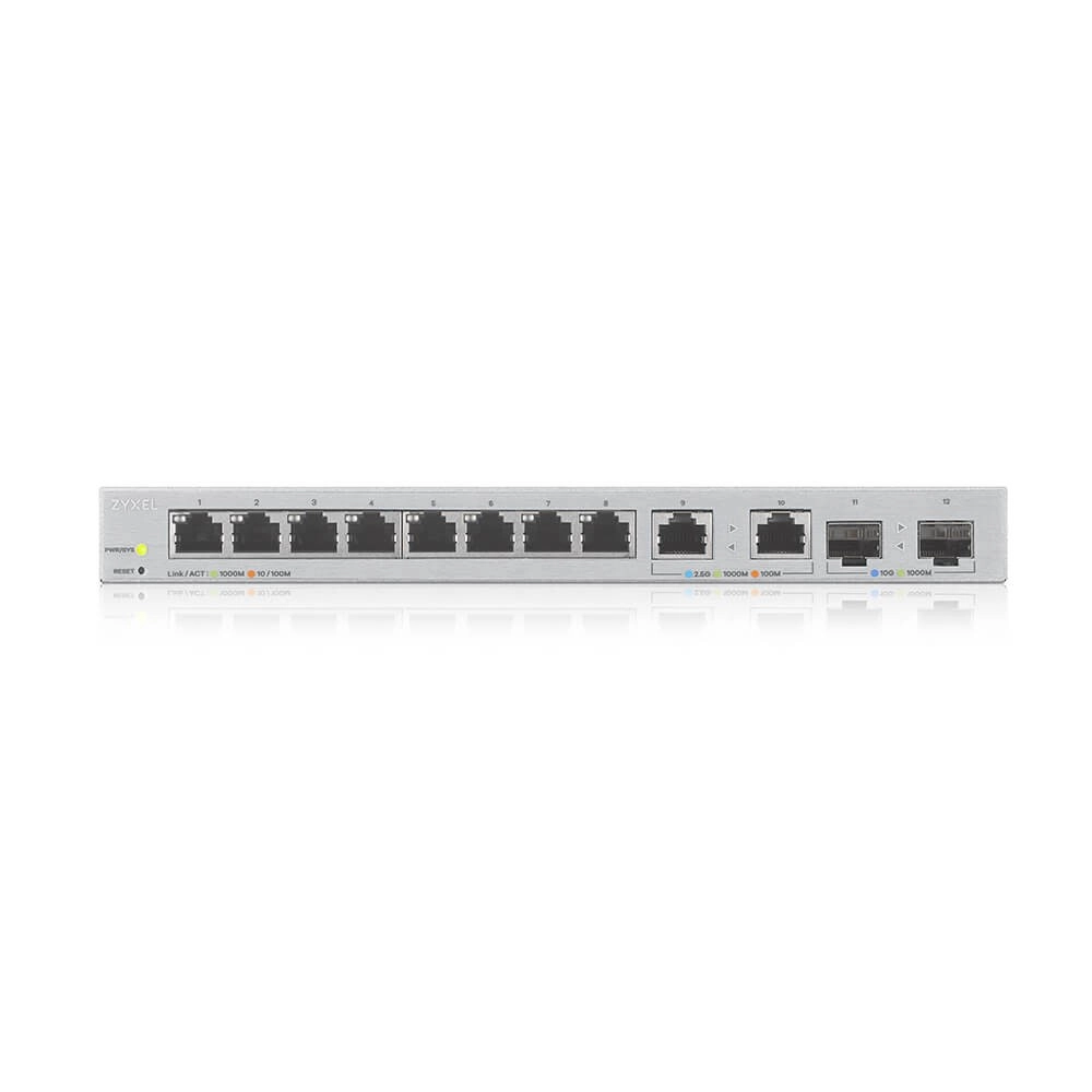 Zyxel XGS1210-12 jest wyposażony w dwa 10‑gigabitowe porty uplink SFP+, dwa porty 2.5‑gigabitowe oraz osiem gigabitowych portów Ethernet, co umożliwia bardzo szybki transfer danych. Połącz punkty dostępowe 802.11ac lub 802.11ax dla maksymalnych prędkości bezprzewodowych. Priorytetyzuj i chroń ruch sieciowy za pomocą wbudowanego interfejsu GUI.
