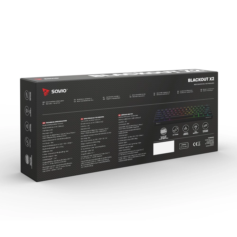 Blackout X2 oferuje aż 18 dynamicznych trybów podświetlenia ARGB, które pozwalają w pełni spersonalizować wygląd klawiatury. Od płynnych przejść kolorów, przez pulsujące fale, po statyczne podświetlenie w różnych odcieniach.