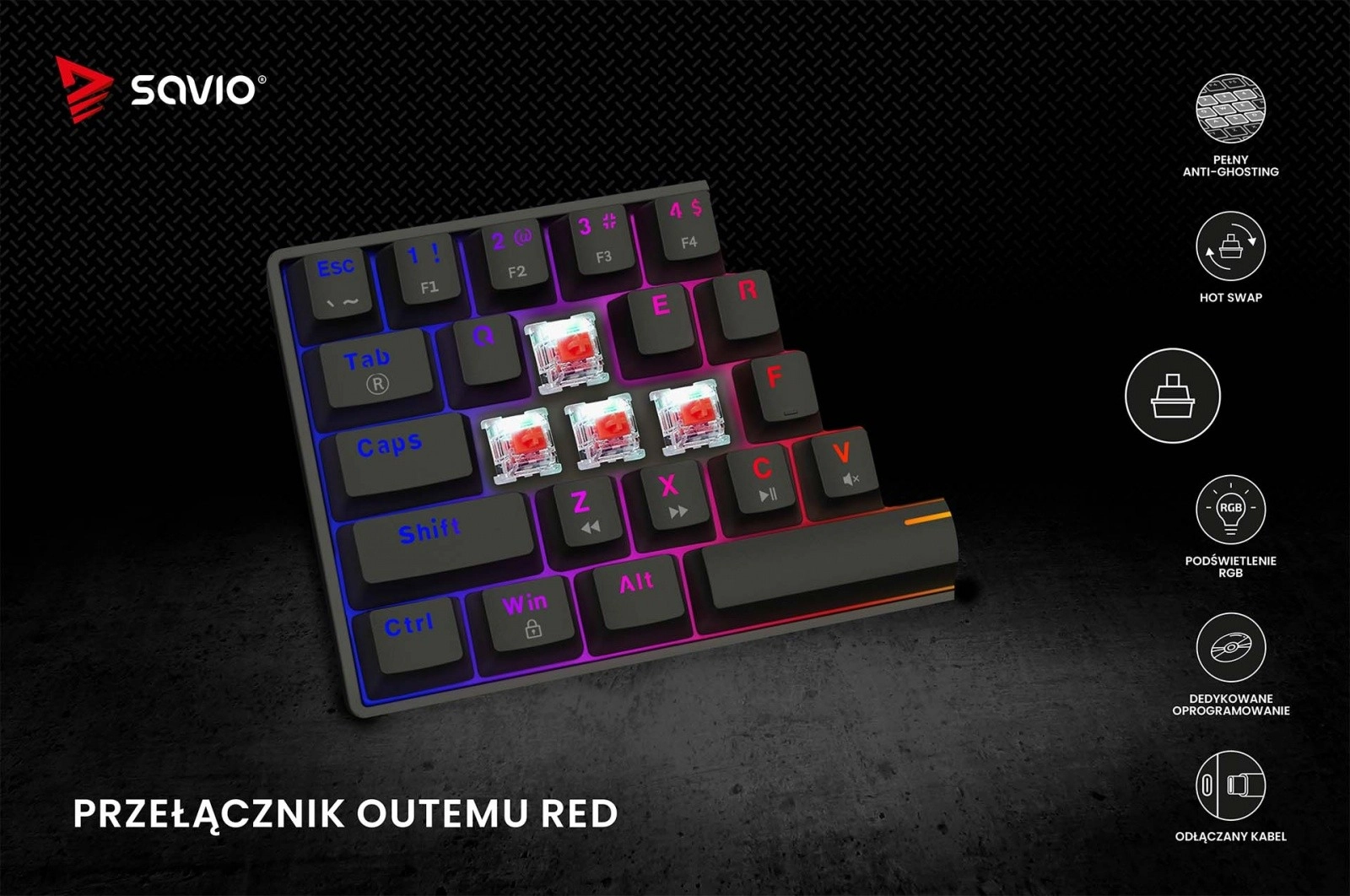 Lubisz personalizować klawiaturę? Z technologią Hot Swap możesz szybko i łatwo wymieniać przełączniki bez lutowania. Zgodność z 3-pinowymi switchami pozwala dopasować funkcjonalność klawiatury do Twoich preferencji.