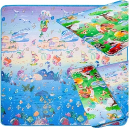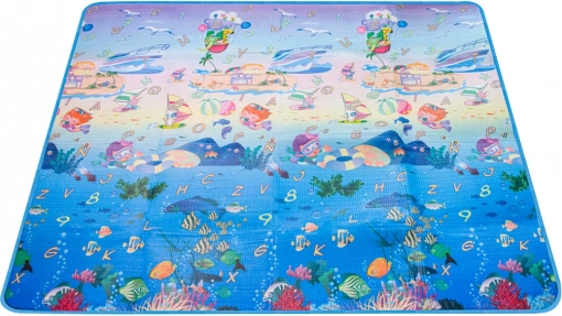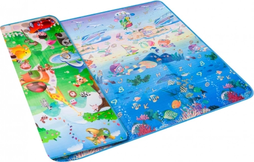 Jedna strona z morskim światem i alfabetem, druga z wesołym zoo – pobudza wyobraźnię i naturalną naukę podczas zabawy.