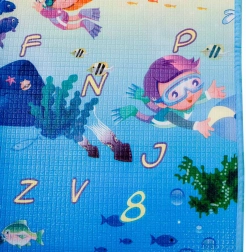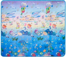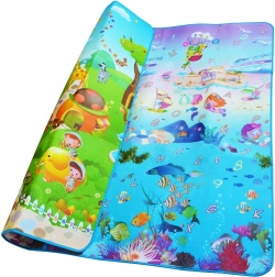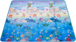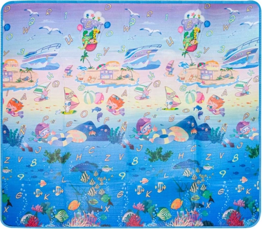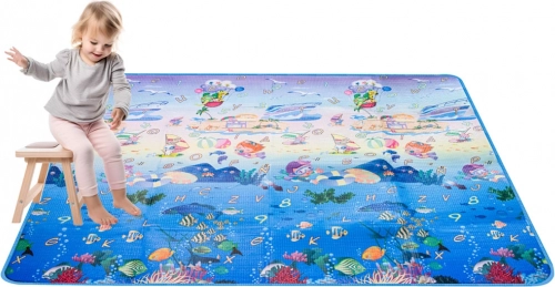 Dwustronna piankowa mata do zabawy dla dzieci zapewnia miękkie i bezpieczne miejsce do zabawy i nauki. Jedna strona przedstawia morski świat z literami i liczbami, druga wesołe zoo. Mata izoluje od chłodu, tłumi upadki i łatwo się czyści – wystarczy przetrzeć wilgotną ściereczką.