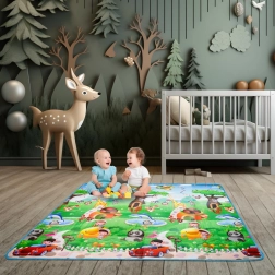 Ta składana mata z wytrzymałej pianki EPE jest idealna jako dywan do pokoju dziecięcego i kącika zabaw. Dzięki dwustronnemu nadrukowi łączy zabawę i naukę – dzieci podczas zabawy utrwalają litery, liczby i zwierzątka.
