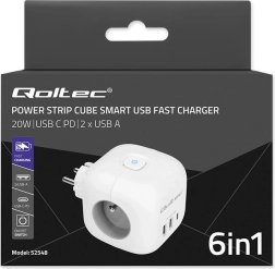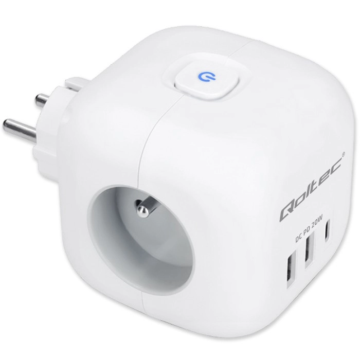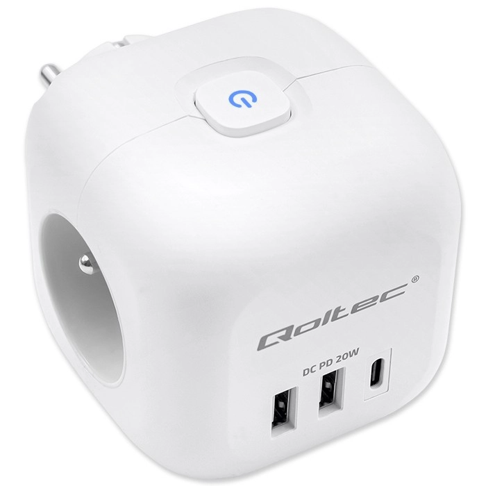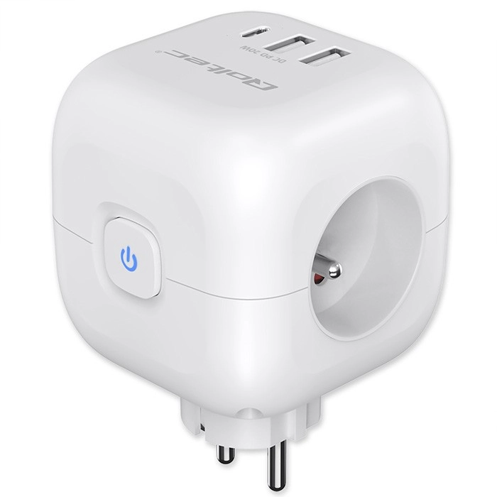 Kompaktowy design kostki zasilającej umożliwiałatwe rozmieszczenie 3 gniazdek AC po bokach dla komfortowego podłączenia nawet większych wtyczek. Na przedniej stronie dostępne są 2 porty USB-A i 1 port USB-C PD 20W, dzięki czemu można wygodnie ładować telefon, tablet czy słuchawki bez potrzeby dodatkowych ładowarek.