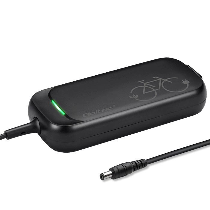 Ładowarka Qoltec oferuje napięcie 42 V, prąd 2 A i jest przeznaczona do akumulatorów litowych 36 V. Można ją łatwo podłączyć do standardowego gniazdka 230 V, a jej zaawansowana elektronika chroni baterię podczas ładowania. Posiada również diodę LED do łatwej kontroli stanu ładowania. Czerwony oznacza ładowanie, zielony wskazuje pełne naładowanie.