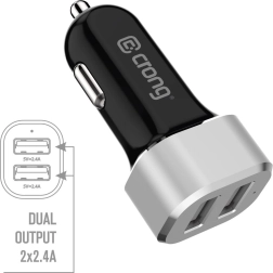 Szybka i niezawodna ładowarka samochodowa z podwójnym portem USB i łączną mocą 24W. Dzięki zaawansowanemu układowi sterującemu Smart Sense IC urządzenie dostosowuje odpowiednie napięcie, chroniąc podłączone sprzęty przed przegrzaniem, przeciążeniem i zwarciami.