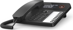 Do wygodnych rozmów oferuje funkcję głośnomówiącą z 7‑stopniową regulacją głośności, a dzięki zintegrowanemu złączu (RJ9) umożliwia podłączenie profesjonalnego headsetu. Przydatne są również siedem razy programowalne przyciski szybkiego wybierania, które zapewniają szybki dostęp do często używanych kontaktów. Opisy tych przycisków można zanotować na papierowej etykiecie, aby mieć je zawsze pod ręką.
