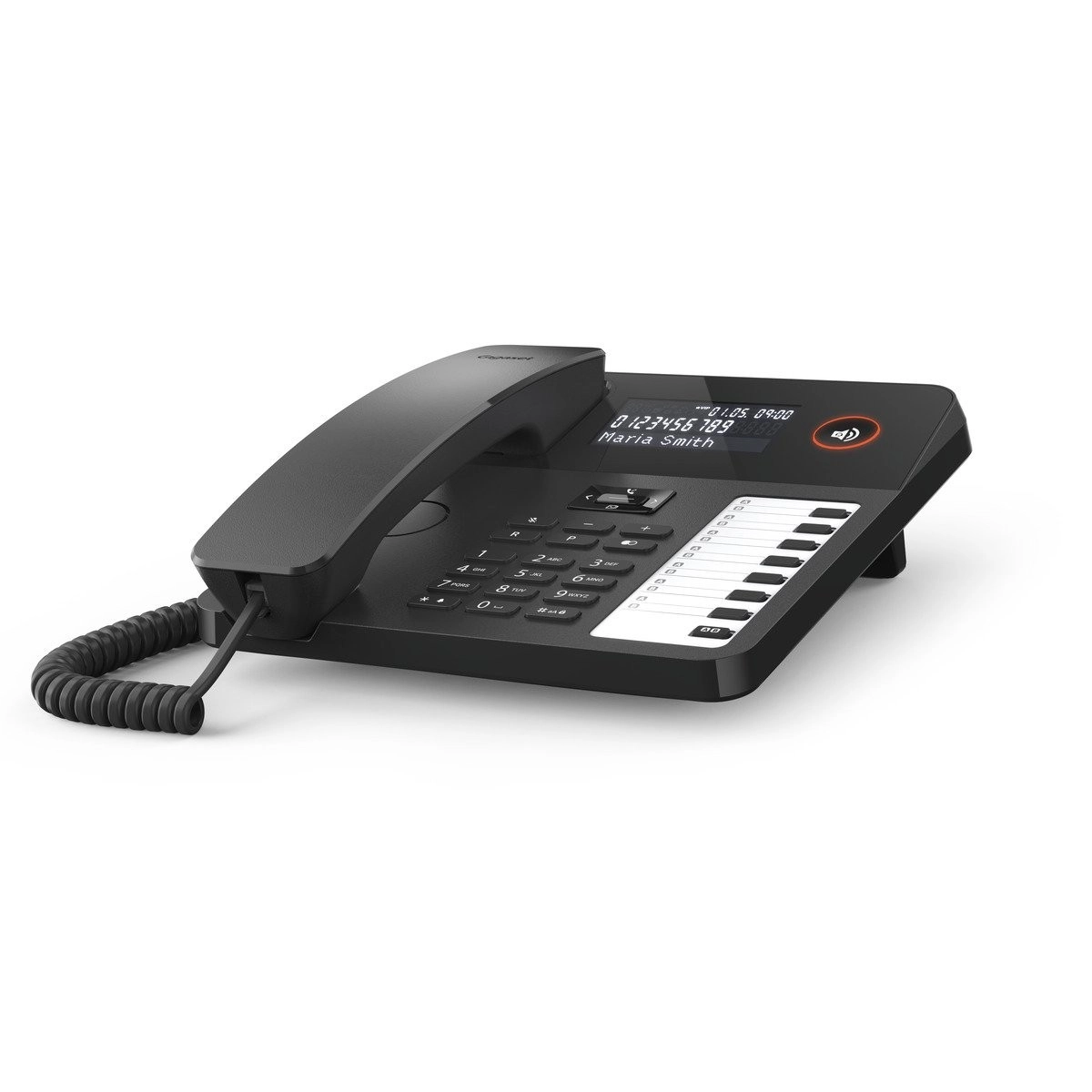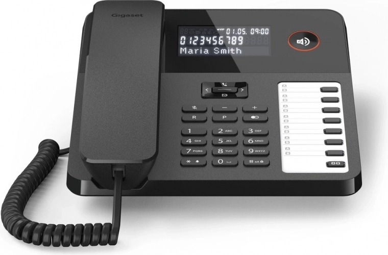 Telefon Gigaset Desk 600 to idealny wybór do użytku domowego i biurowego. Dzięki trzyliniowemu podświetlanemu wyświetlaczowi LCD telefon pokazuje informacje o połączeniu, takie jak czas, nazwa, numer czy status VIP dzwoniącego. Ekran główny wyświetla datę, godzinę i dzień tygodnia.