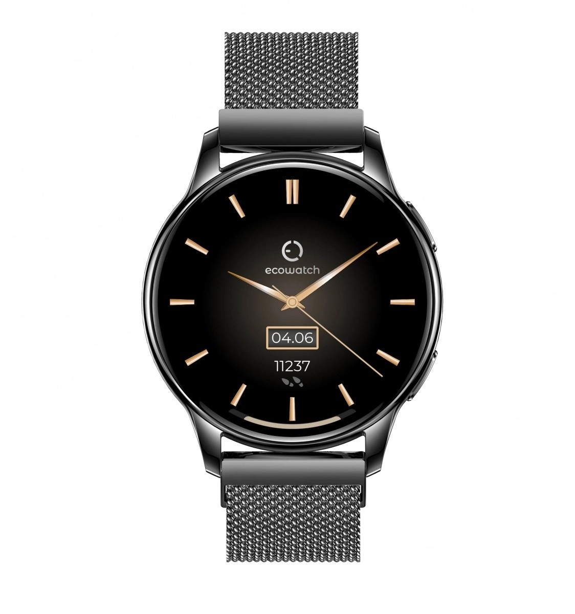 Elegancki smartwatch EW03 łączy klasyczny biżuteryjny design z niezbędną funkcjonalnością, dostępny w dwóch stylowych kolorach: głębokiej czerni i eleganckim złocie.