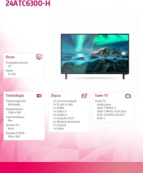 Kompaktowy telewizor LED z przekątną 24" jest idealny do mniejszych pomieszczeń, kuchni lub sypialni. Oferuje energooszczędną pracę, ostry obraz i proste sterowanie. Dzięki kompaktowym wymiarom i lekkiej konstrukcji łatwo go ustawić niemal wszędzie, zapewniając wygodne oglądanie ulubionych programów. Ciesz się czystym obrazem, niskim zużyciem energii i łatwą instalacją w codziennym użytkowaniu.