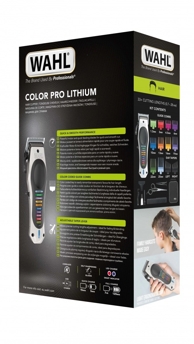 Maszynka do włosów Color Pro Lithium oferuje mocny silnik i wysokobrotowe ostrza, które zapewniają szybkie i gładkie cięcia. Już nie musisz tracić czasu na stylizację włosów.