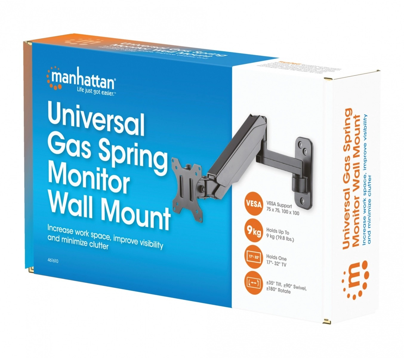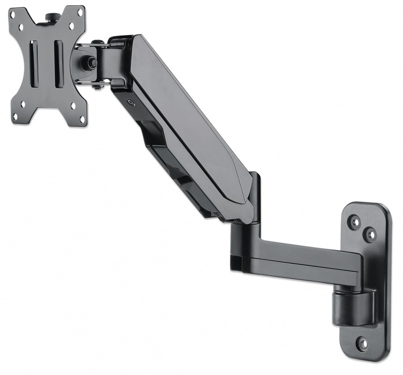 Uniwersalny uchwyt do monitora Manhattan ze sprężyną gazową oferuje jednoprzegubowe ramię, które ułatwia przesuwanie ekranu do wygodniejszego kąta widzenia przy minimalnym wysiłku.