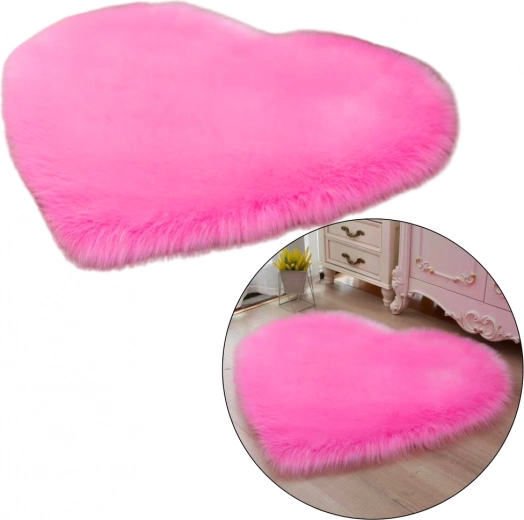 Różowy pluszowy dywanik w kształcie serca łączy walory dekoracyjne z praktycznym zastosowaniem. Nadaje się do pokoju dziecięcego, sypialni czy damskiej garderoby, wprowadzając ciepłą i przyjazną atmosferę.