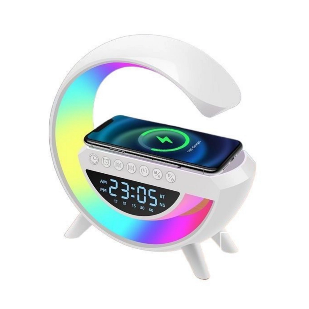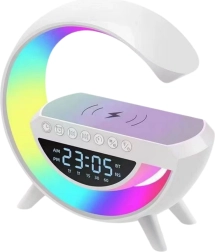 Nowoczesna lampka nocna G63 to idealne wyposażenie każdej sypialni, pokoju dziecięcego czy biura. Łączy funkcje inteligentnego oświetlenia, budzika, głośnika z dźwiękami natury oraz ładowarki indukcyjnej, zapewniając komfort i funkcjonalność w jednym eleganckim urządzeniu. Dzięki symulacji wschodu słońca pobudka jest bardziej naturalna i przyjemna, co poprawia samopoczucie już od rana. Płynna regulacja jasności oraz wybór różnych trybów kolorystycznych pozwalają dopasować atmosferę do każdej sytuacji – od relaksu przed snem po poranne przebudzenie.