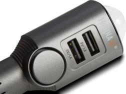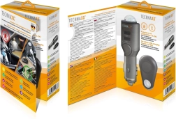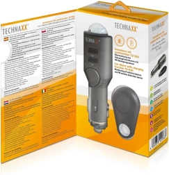 Autoalarm Technaxx TX-100 to małe urządzenie, które instalujemy w gniazdku zapalniczki samochodowej. Łączy funkcję autoalarmu z 2-portową ładowarką USB, idealną do ładowania urządzeń mobilnych.