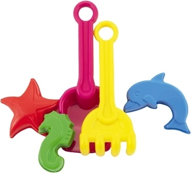 Dziecięcy, plastikowy zestaw do piasku zapewnia mnóstwo zabawy przy budowaniu zamków, robieniu babek i odkrywaniu świata w piaskownicy. Dzięki wytrzymałemu materiałowi i zaokrąglonym krawędziom jest bezpieczny także dla najmłodszych.