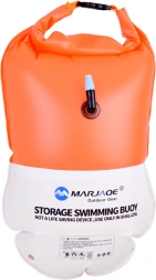 Ta pływacka boja typu dry bag łączy bezpieczeństwo i praktyczne przechowywanie w jednym. Wytrzymały materiał PVC, zamknięcie roll-top z klamrą oraz oddzielny zawór do pompowania utrzymują Twoje rzeczy w suchym miejscu, a boję odpowiednio napompowaną. Jaskrawy kolor wyraźnie zwiększa widoczność dla łodzi i innych pływaków.