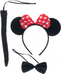 Uroczy zestaw do przebierania w mgnieniu oka zamieni każde dziecko w sympatyczną myszkę. Zawiera opaskę z uszkami i czerwoną kokardą w grochy, czarną muszkę i miękki ogonek. Świetny wybór na karnawał, Halloween i imprezy tematyczne – uniwersalny rozmiar, wygodne noszenie i trwałe, tekstylne wykonanie.