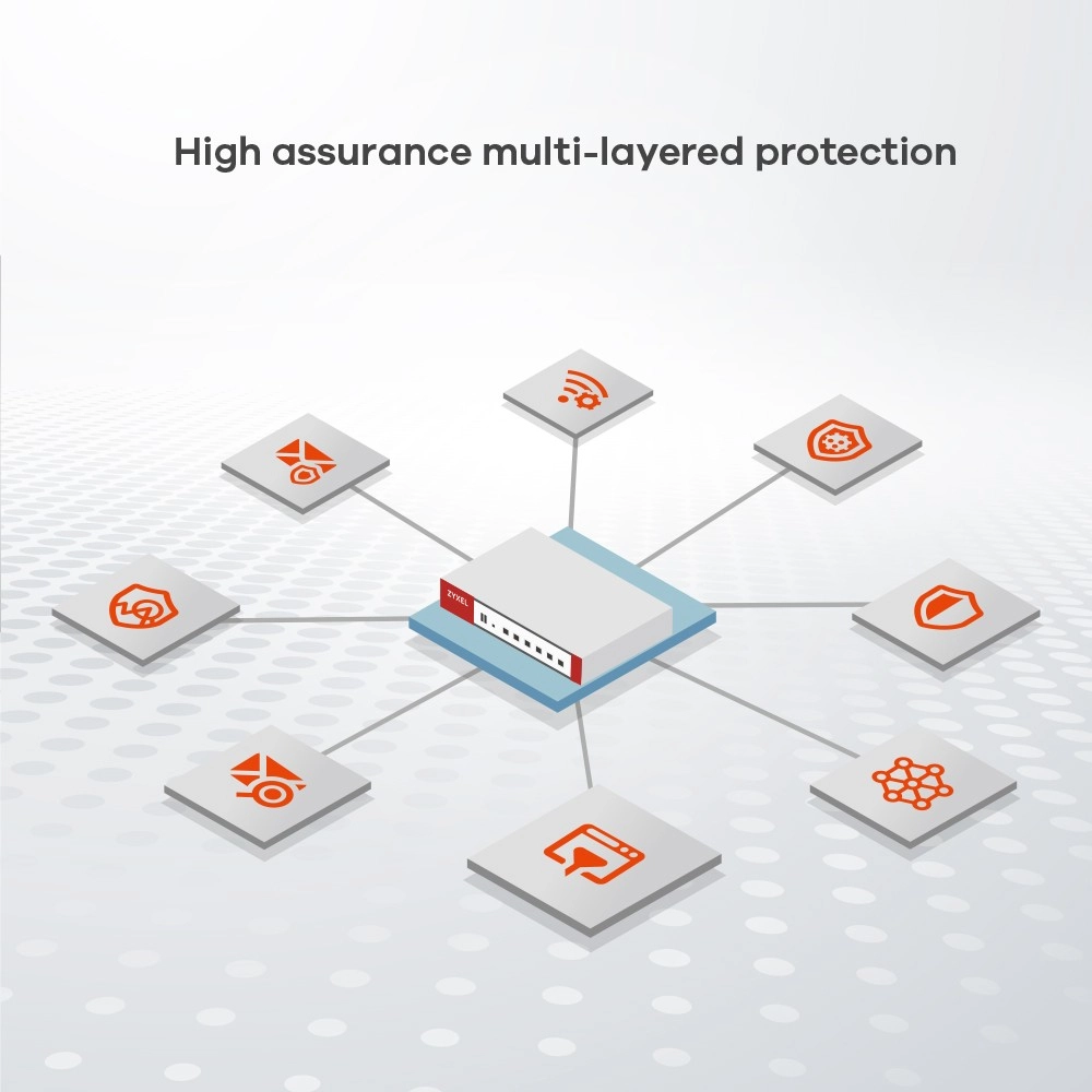 Integracja z Nebula Cloud Management umożliwia szczegółowe ustawienia polityki bezpieczeństwa Zero-Trust Network dla organizacji z możliwością uwierzytelniania dostępu i zabezpieczonym Wi‑Fi. Zaawansowany wywiad o zagrożeniach zintegrowany z analizami wiodących firm zwiększa dokładność detekcji dzięki szerszemu pokryciu bazy malware.