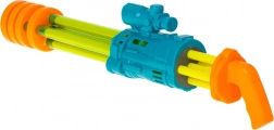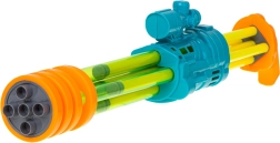 Atrakcyjne kolory takie jak niebieski, zielony i pomarańczowy wraz z designem mini działa przyciągają uwagę dziecka i dodają mu poczucia bohaterstwa podczas zabawy.