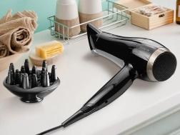 Koncentrator do precyzyjnej stylizacji. Skoncentrowany strumień powietrza i wysoka moc 2200 W umożliwiają szybkie suszenie i precyzyjne modelowanie fryzury.