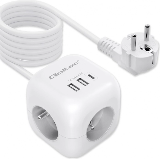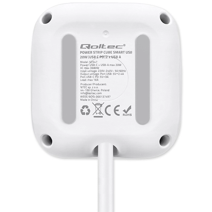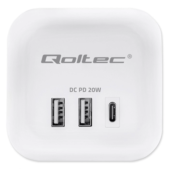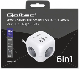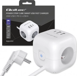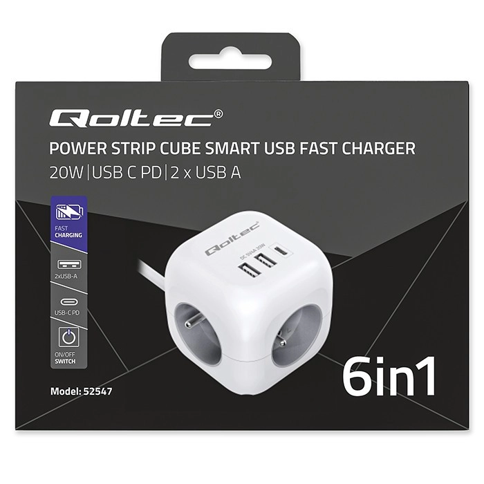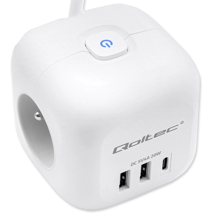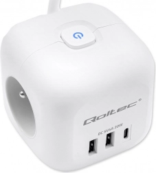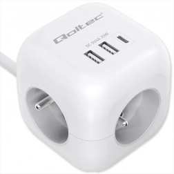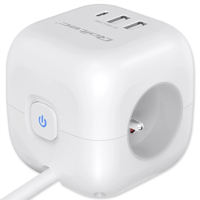 Przemyślany układ portów - koniec z blokującymi się wtyczkami i plątaniną kabli. Dzięki ergonomicznie rozmieszczonym 3 gniazdom AC po bokach kostki łatwo podłączysz nawet większe wtyczki, bez wzajemnego blokowania. Z przodu znajdują się 2 porty USB-A oraz 1 port USB-C PD 20W do szybkiego ładowania smartfona, tabletu lub słuchawek bez potrzeby używania osobnych ładowarek.