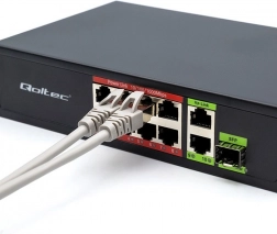 - Zgodność ze standardem IEEE 802.3af – zapewnia do 15,4 W na port i łącznie do 120 W mocy wyjściowej dla całego przełącznika,