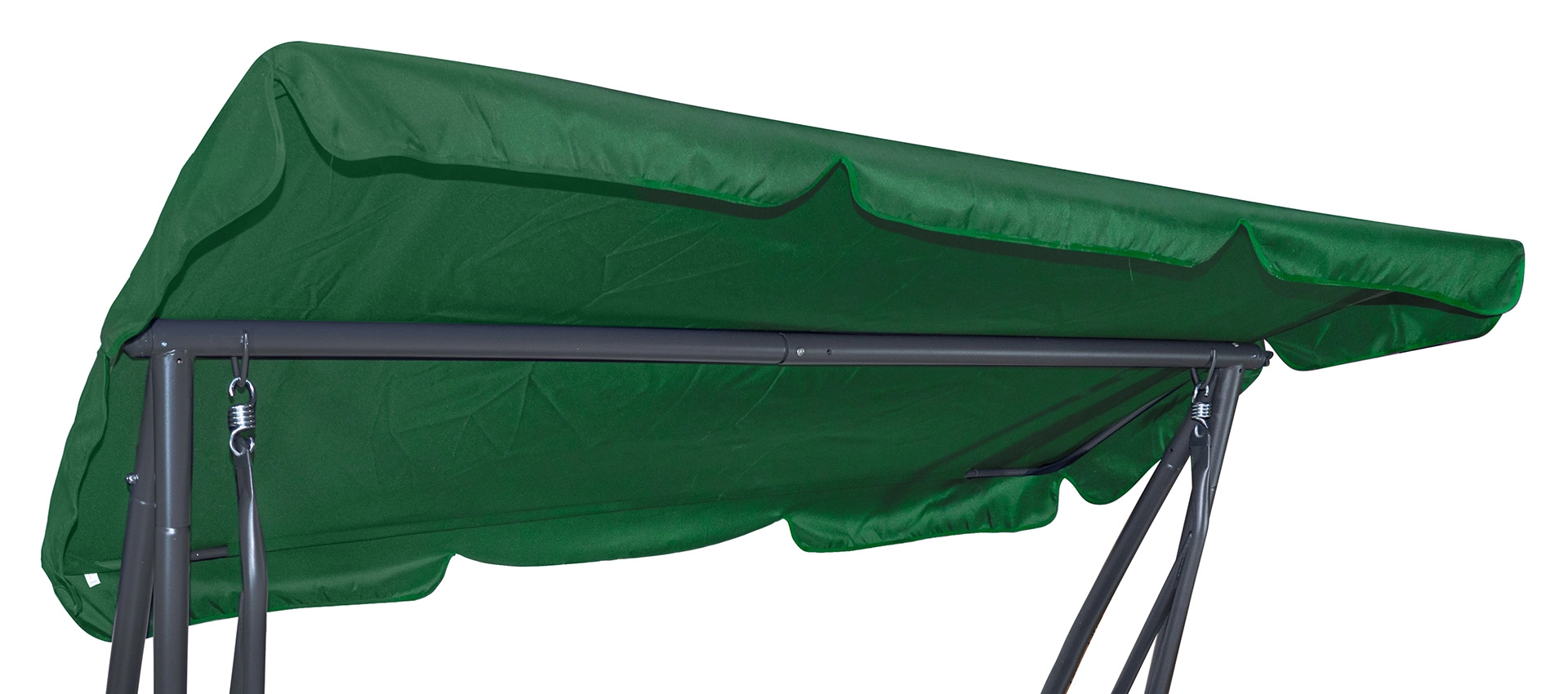 Dach w jednolitym zielonym kolorze nadaje huśtawce świeży i elegancki wygląd. Oprócz ochrony dach posiada także dekoracyjną falbanę, która dodaje stylu.