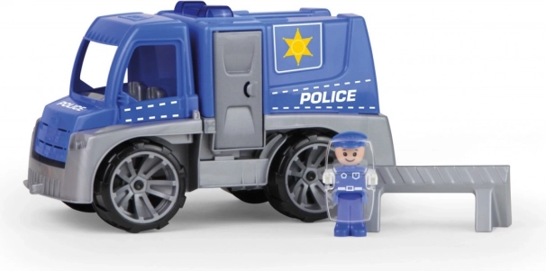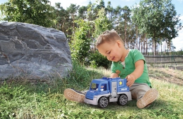 Odkryj wytrzymały policyjny samochód, który sprosta przygodom w ogrodzie i w dziecięcym pokoju. Dzięki solidnej konstrukcji i wysokiej jakości plastikowi jest idealny do codziennej zabawy. Realistyczne elementy, takie jak otwierane drzwi i odchylana kabina, pobudzają wyobraźnię i rozwój małej motoryki.