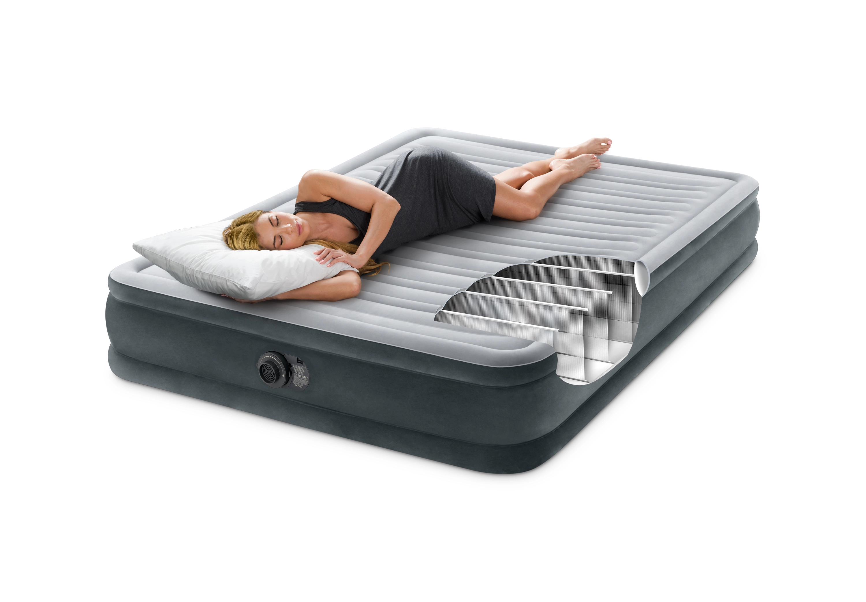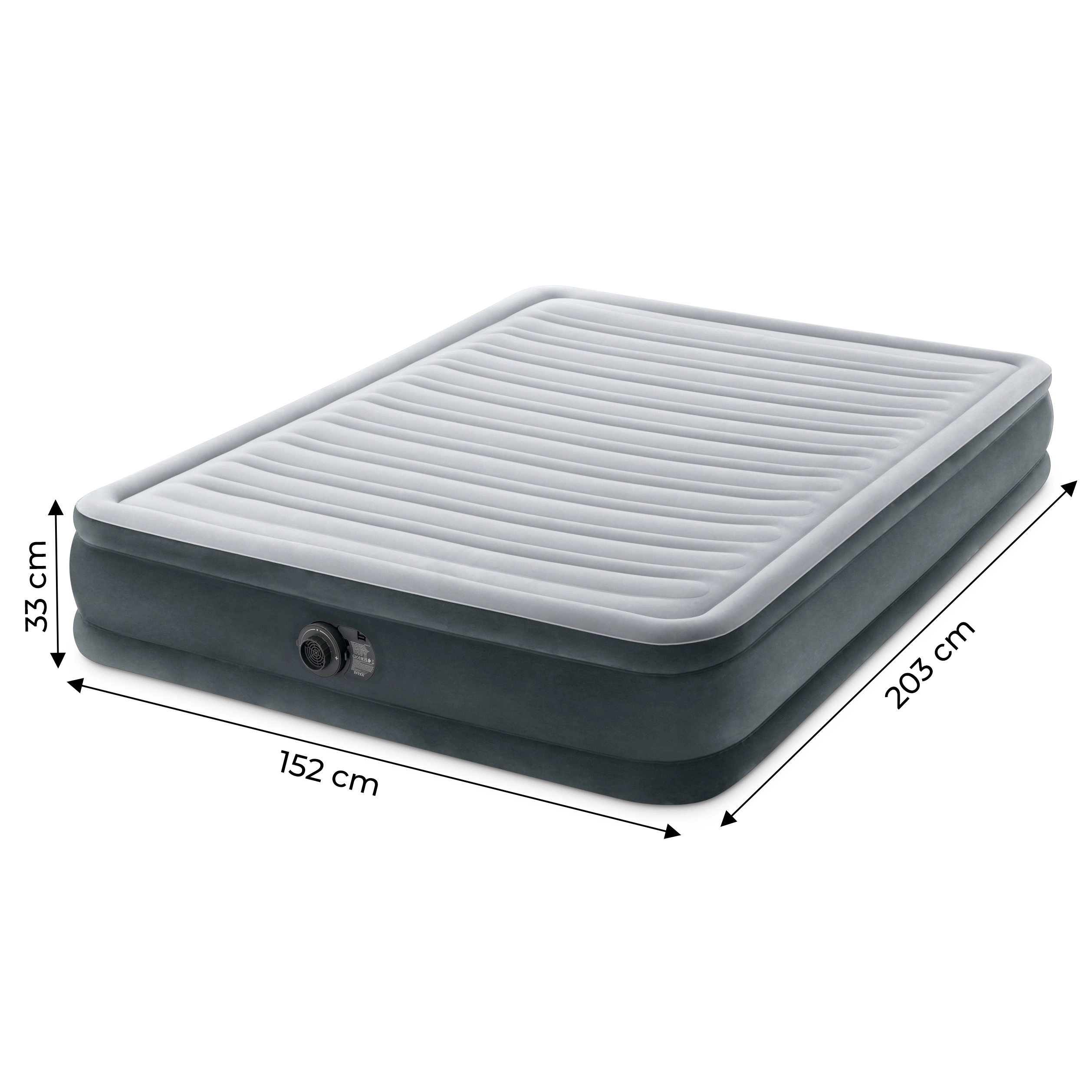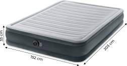 Szukasz wygodnego i trwałego rozwiązania do spania dla gości lub w podróży? To dwuosobowe dmuchane łóżko INTEX zapewnia wysoki komfort snu dzięki miękkiej, welurowej powierzchni, podwyższonej wysokości i równomiernemu rozkładowi ciężaru. Zintegrowana elektryczna pompka gwarantuje szybkie pompowanie i spuszczanie powietrza w kilka minut.