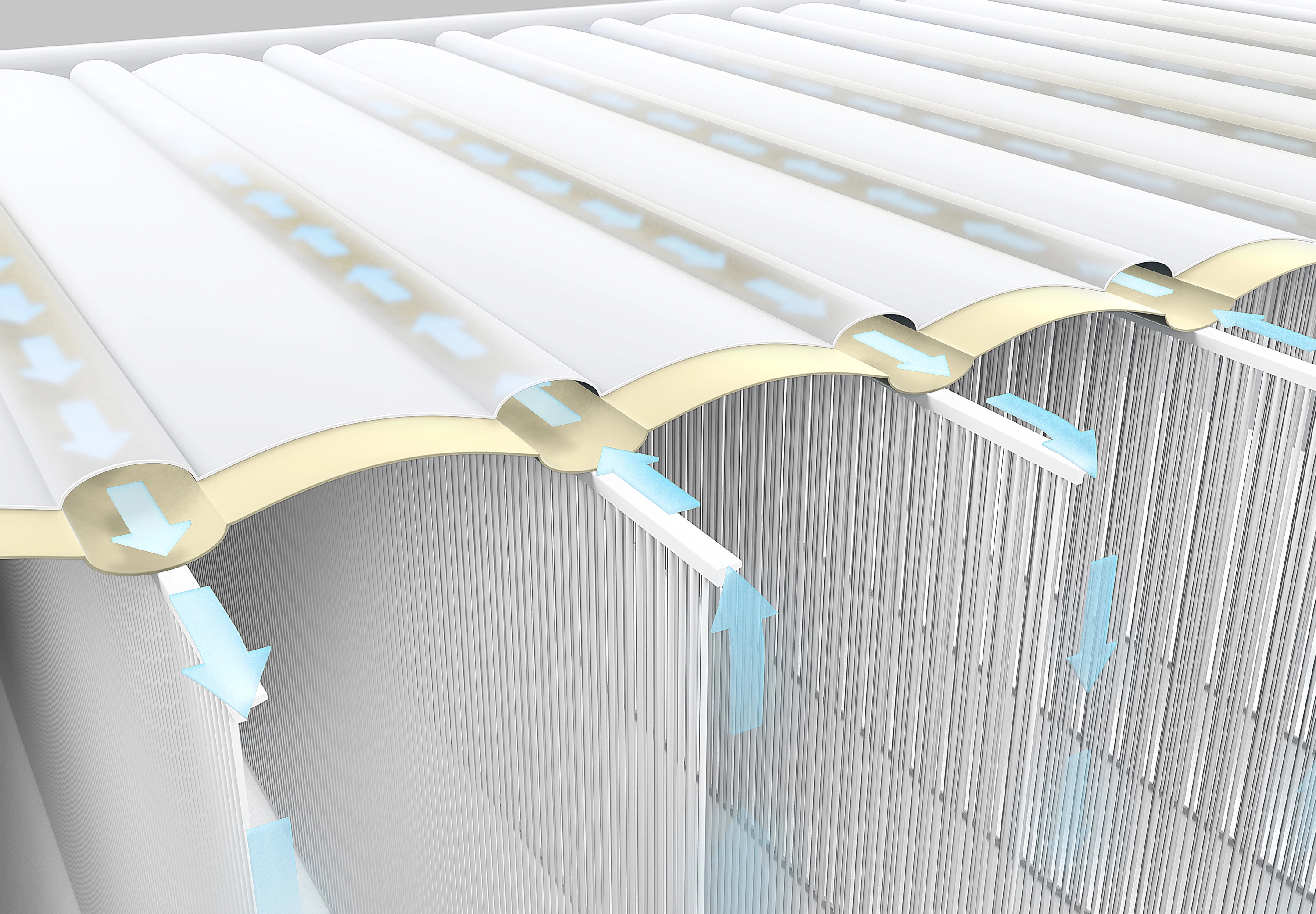 Wzmocnione komory z włóknami poliestrowymi zwiększają sztywność i trwałość. Dura‑Beam równomiernie rozkłada ciężar i wspiera prawidłową postawę kręgosłupa.