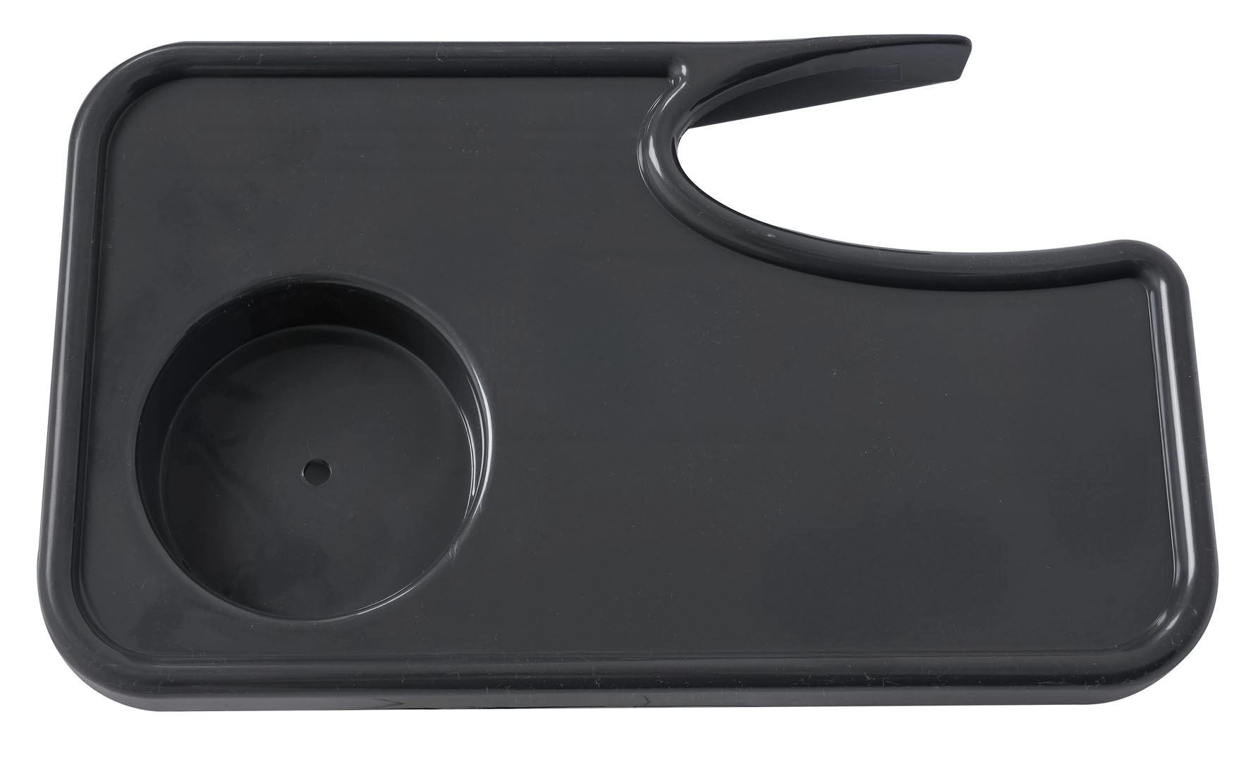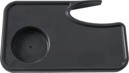 Każda tacka ma zintegrowany okrągły otwór na napój oraz podwyższone krawędzie, które pomagają zapobiegać rozlaniu i upadkowi drobiazgów.