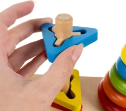 Poznaj trzy podstawowe kształty: koło, trójkąt i prostokąt. Zabawka zawiera podstawę oraz wiele elementów, które można łatwo manipulować i składać.