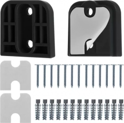 W zestawie znajdują się uchwyty, śruby i kołki rozporowe. Wystarczy przymocować korpus bramki po jednej stronie otworu, a haczyk po drugiej.