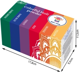 Rozświetl każde wydarzenie kolorowym proszkiem Holi w zestawie 6×100 g. Proszki tworzą intensywne i żywe kolory, które w powietrzu zamieniają się w efektowne chmury barw. Wykonane z naturalnych, łagodnych składników, odpowiednich dla różnych grup wiekowych. Idealne na festwale, urodziny, eventy firmowe i sesje zdjęciowe.