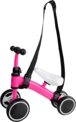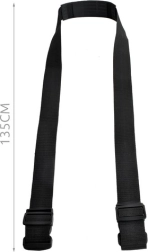 Lekki i wytrzymały pasek w czarnym kolorze zaprojektowano do wygodnego przenoszenia biegówki, hulajnogi lub innego dziecięcego pojazdu. Regulowana długość pozwala dopasować go do sylwetki osoby niosącej oraz wymiarów sprzętu. Część naramienna jest usztywniona, dzięki czemu nie wrzyna się podczas dłuższego noszenia i zapewnia wysoki komfort.