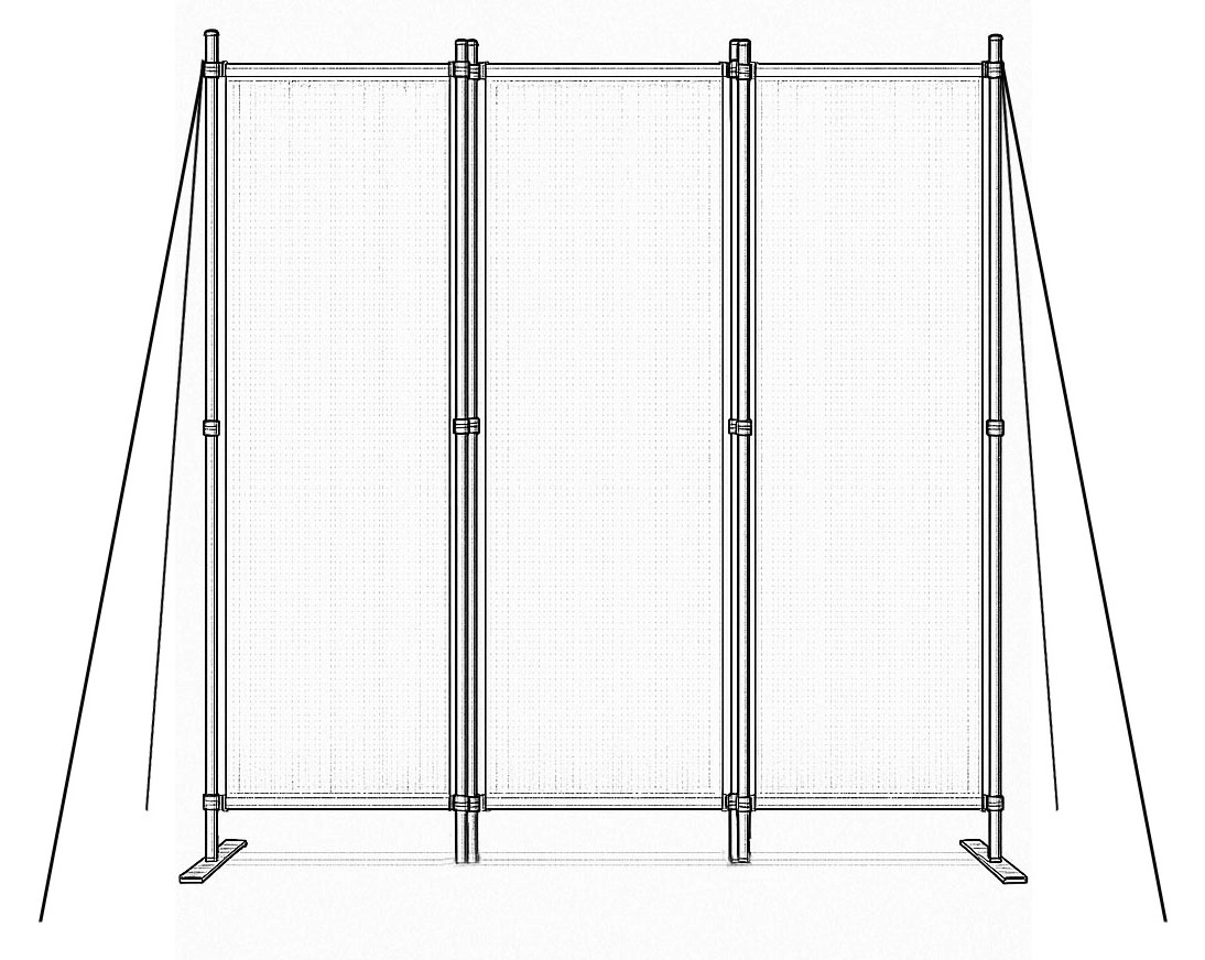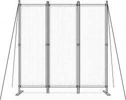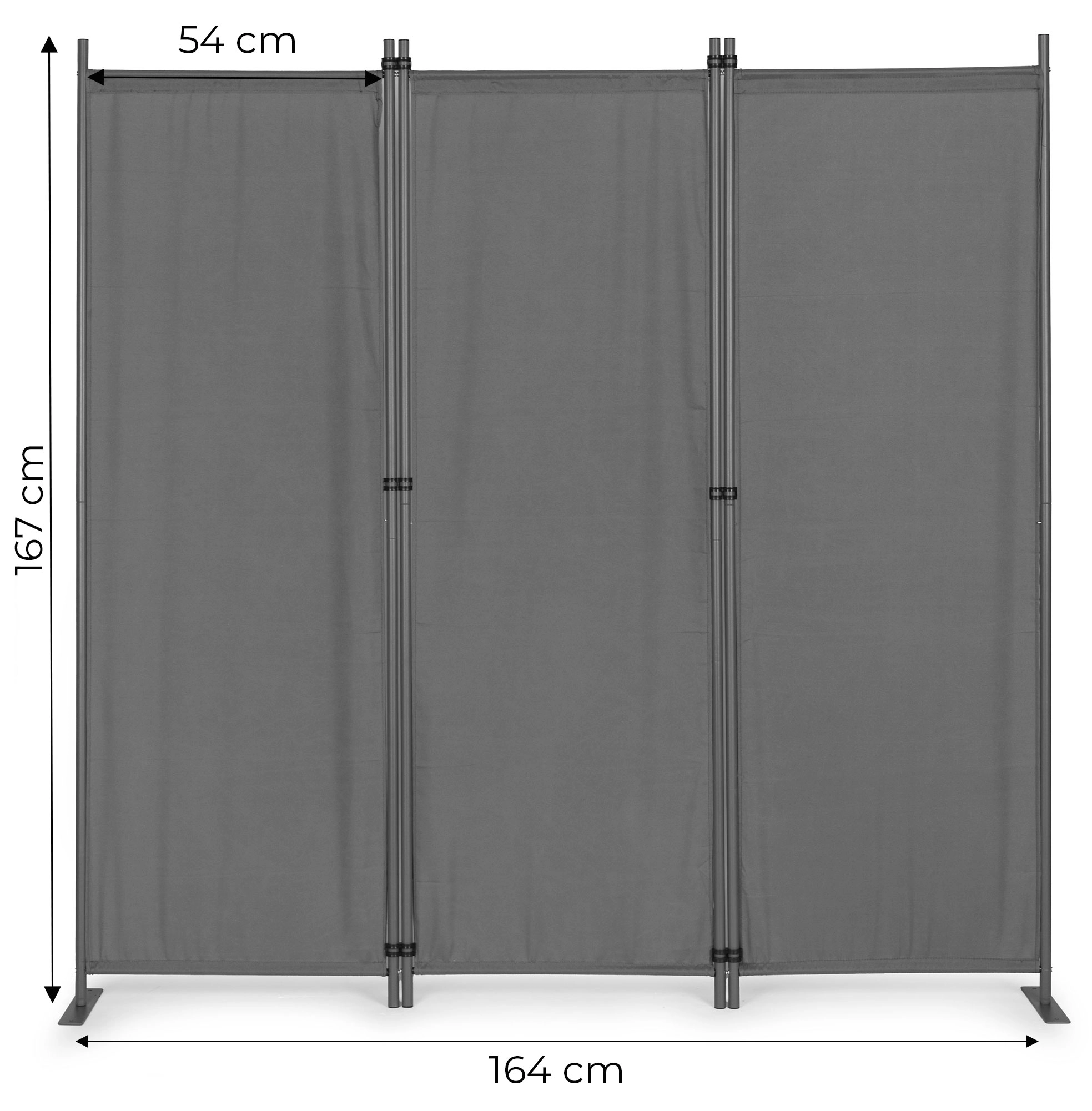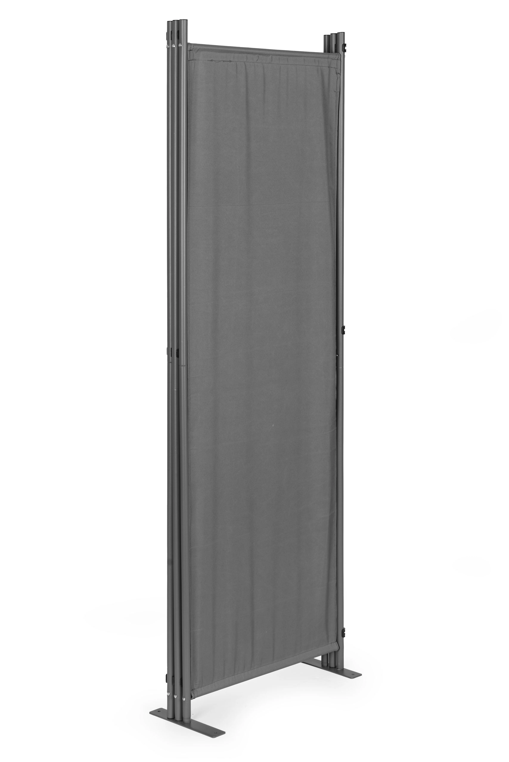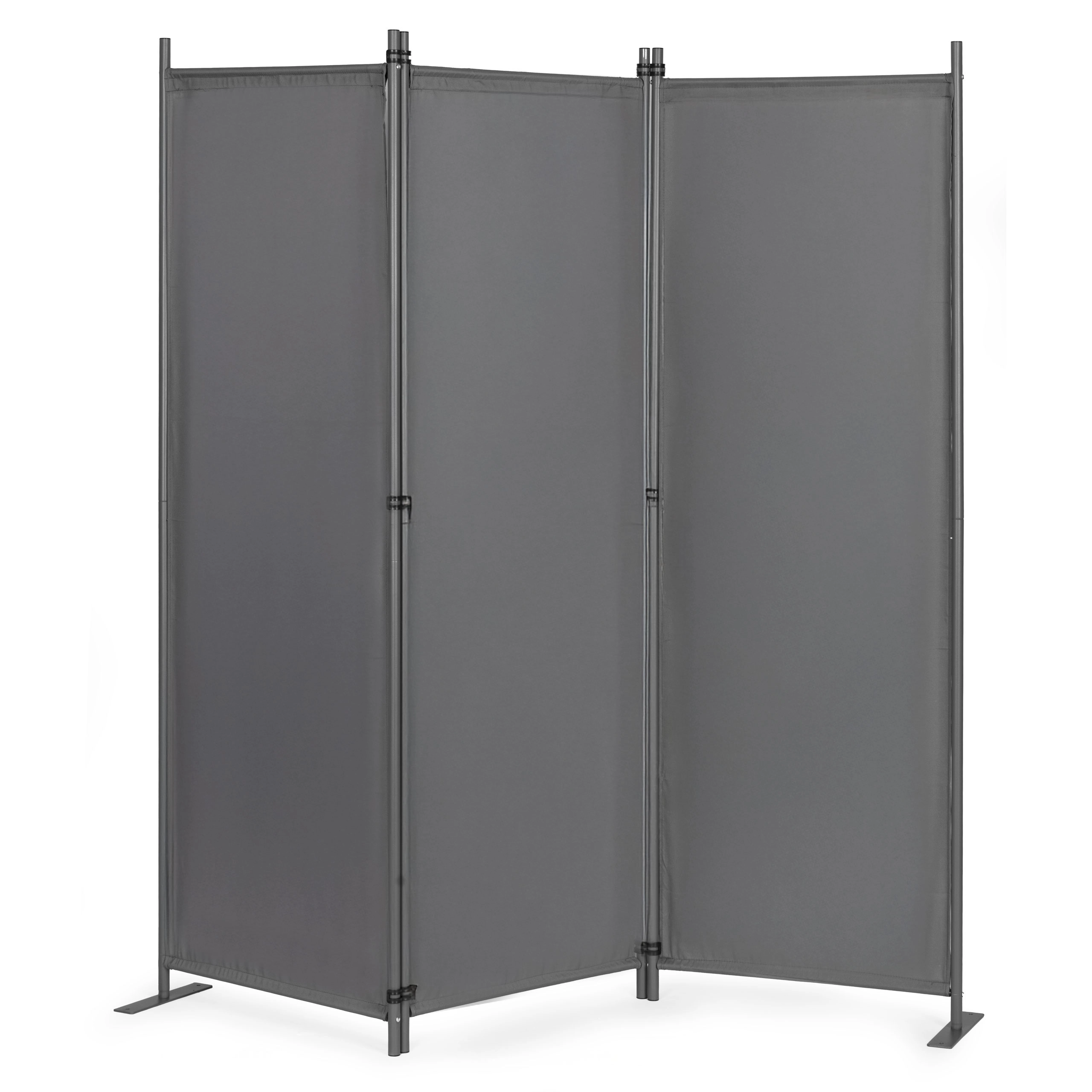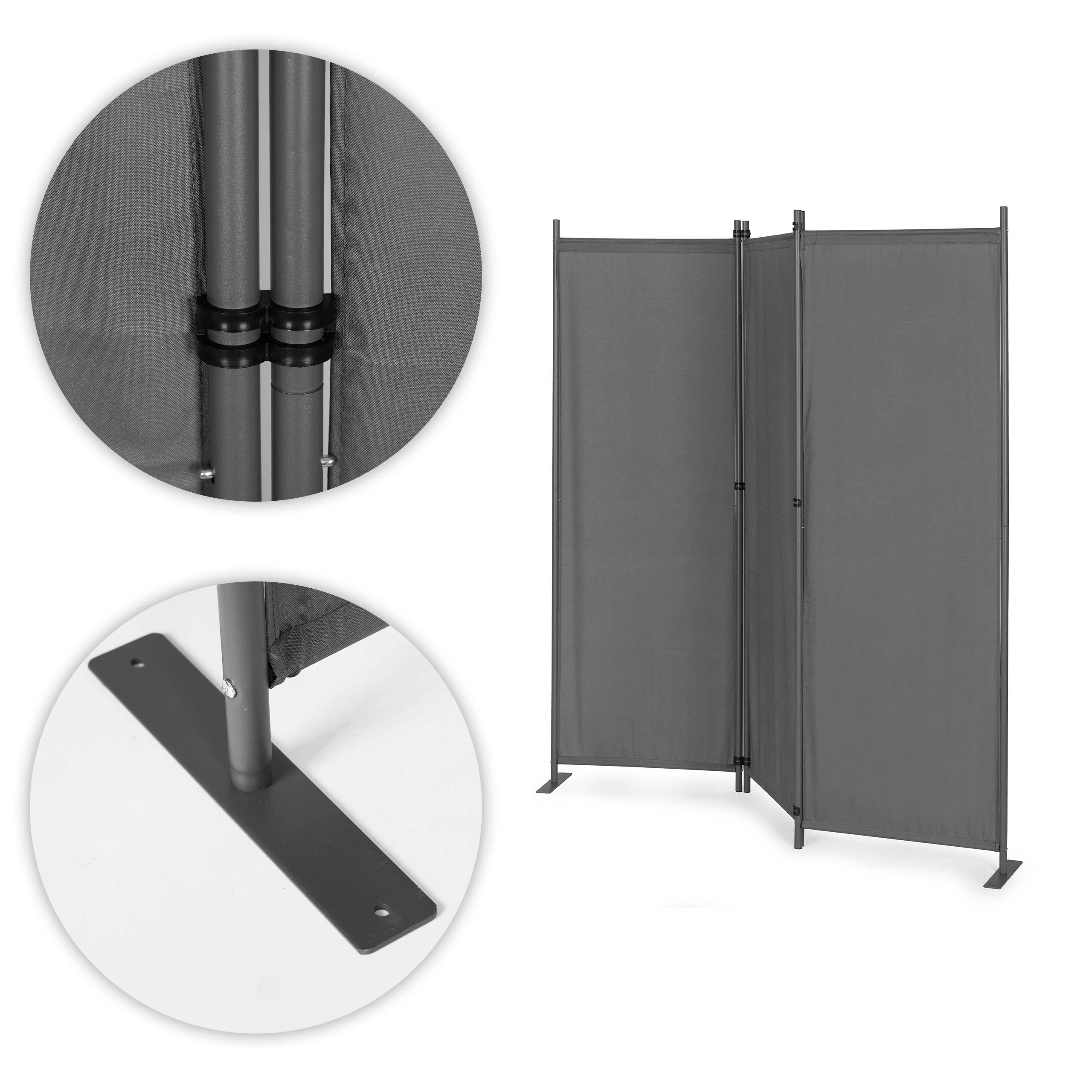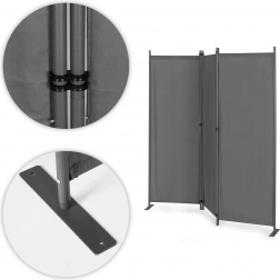 Solidne łączniki panelowe zapewniają płynne składanie i rozkładanie, co ułatwia codzienne użytkowanie. Stabilna metalowa podstawa jest wyposażona w praktyczne otwory montażowe do przytwierdzenia do podłoża, co zwiększa stabilność i zapobiega przewróceniu nawet na nierównym terenie.