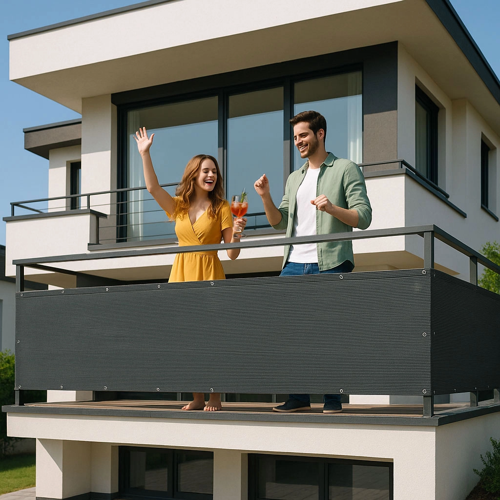 Szary parawan na balkon MultiGarden to idealne rozwiązanie dla tych, którzy poszukują większej prywatności i przyjemnego cienia na balkon, taras lub do altany. Wytrzymała siatka HDPE zapewnia doskonałą ochronę przed wiatrem i promieniowaniem słonecznym, tworząc przyjemną strefę do relaksu. Wzmocnione krawędzie z aluminiowymi oczkami i dołączonymi akcesoriami montażowymi umożliwiają łatwą i bezpieczną instalację na balustradzie. Produkt jest funkcjonalnym i stylowym dodatkiem do Twojej przestrzeni.