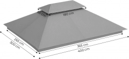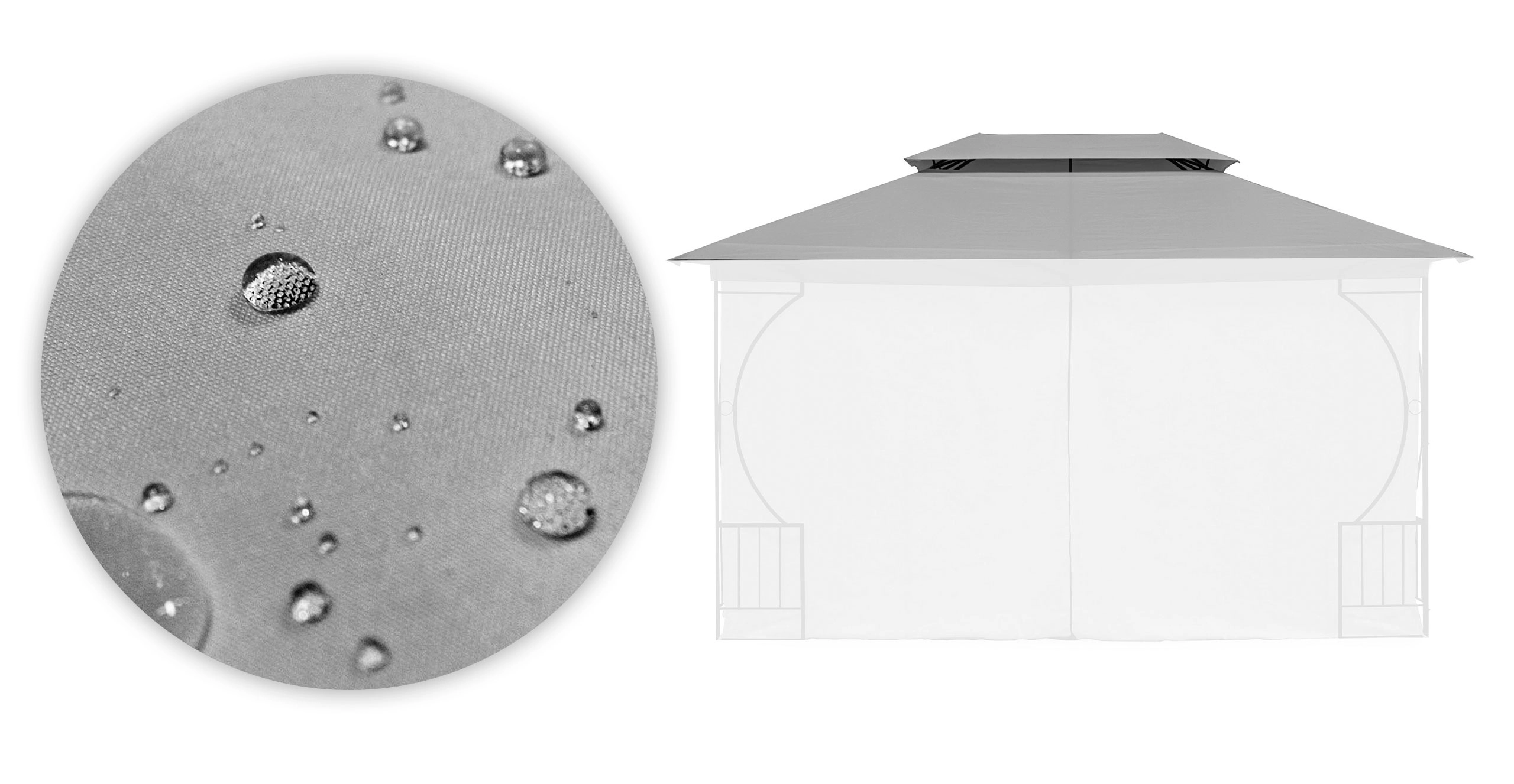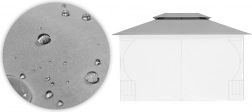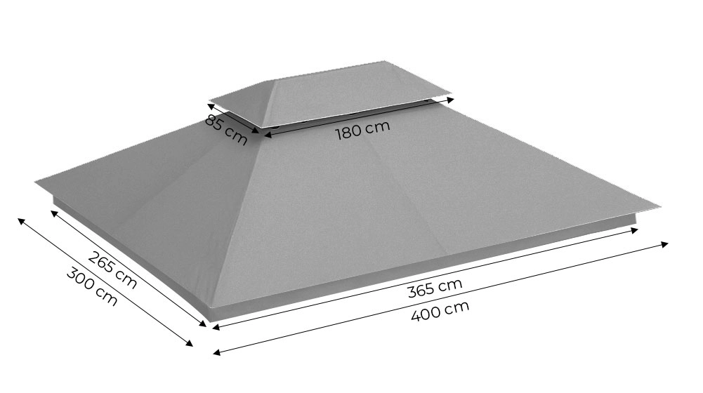 Wytrzymały materiał: Poliester 180 g/m² zapewnia wysoką odporność na rozdarcia, ścieranie i warunki atmosferyczne. Dach jest nieprzemakalny, odporny na UV i zabezpieczony przed pleśnią.