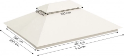 Zapasowy dach do Twojego pawilonu ogrodowego o wymiarach 3x4 m oferuje wyjątkową ochronę dzięki wodoodpornej i odpornej na UV tkaninie poliestrowej 180 g/m². Świetnie sprawdzi się podczas imprez ogrodowych, grillowania czy leniwych popołudni — wydłuży sezon ogrodowy od wiosny aż do jesieni!