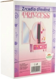 Drewniana toaletka ze szkatułką Princess to świetny dodatek do dziecięcego pokoju. Centralne owalne lusterko uzupełniają dwa boczne skrzydła dla wygodnej regulacji kąta. W dolnej części znajduje się praktyczna szufladka, do której dzieci schowają swoje małe skarby. Delikatne zdobienia z motywami wróżek, kwiatów i serduszek pobudzają wyobraźnię i radość z zabawy.