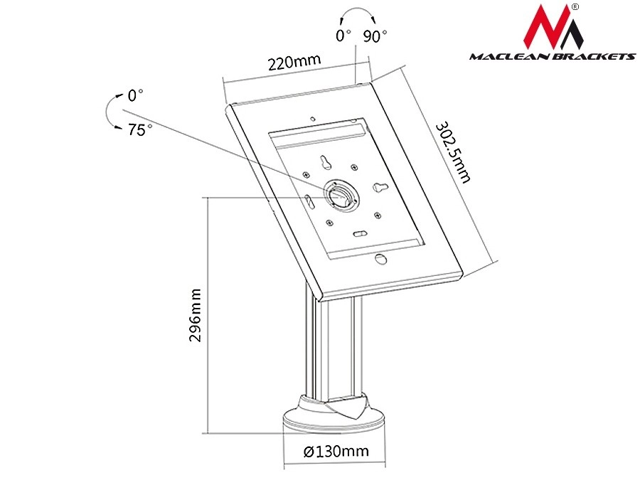 Stojak reklamowy uchwyt na tablet dla iPad 2/3/4/Air/Air2 zapewnia wysoką jakość wykonania oraz bezpieczeństwo dzięki stalowej podstawie z otworami montażowymi. Oferuje możliwość umieszczenia tabletu poziomo i pionowo.