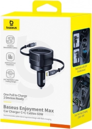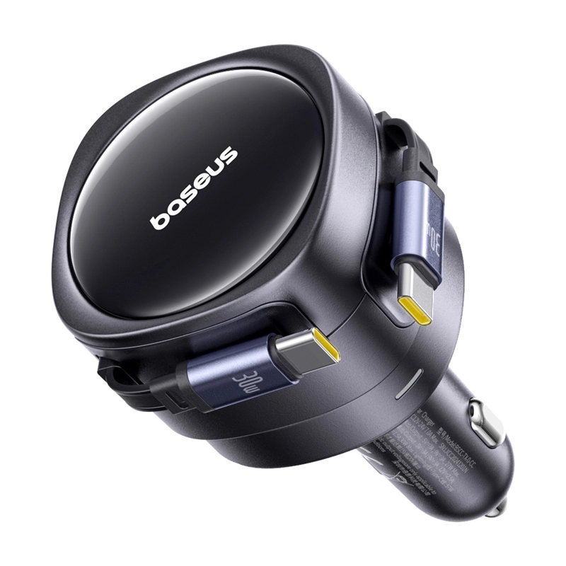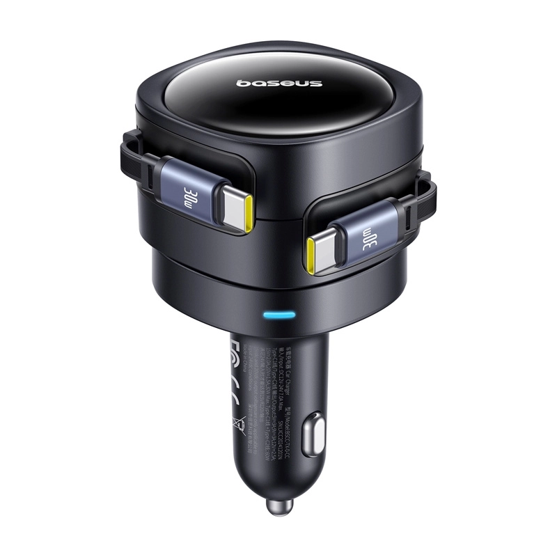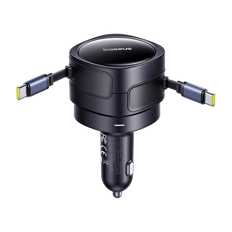Ładowarka samochodowa Baseus oferuje kompaktowy i elegancki design, idealny do wszechstronnego użytku w samochodzie. Z podwójnymi kablami USB-C o długości 80 cm umożliwia ładowanie dwóch urządzeń jednocześnie, bez plątaniny kabli dzięki mechanizmowi obrotowemu do 180°.