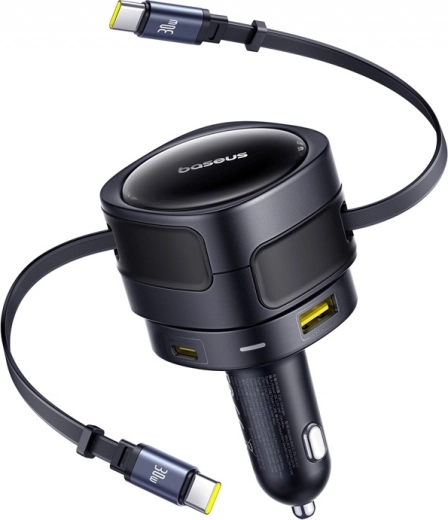 Ta inteligentna ładowarka umożliwia wygodne ładowanie bez plączących się kabli dzięki mechanizmowi obrotowemu 180°. Jej podwójne przewody o długości 80 cm automatycznie się zwijają, minimalizując bałagan w samochodzie.