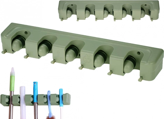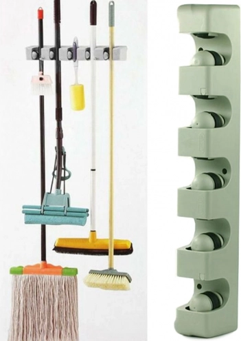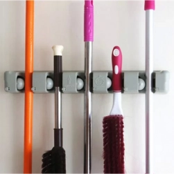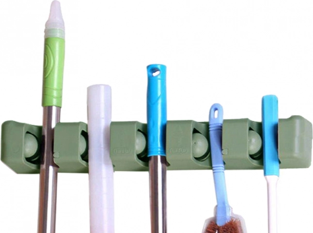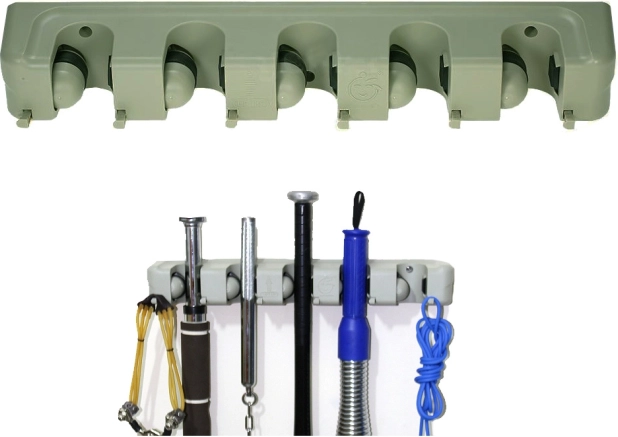 Wieszak ścienny na mopy i szczotki to idealny pomocnik dla każdego domu czy garażu. Z pięcioma regulowanymi slotami i sześcioma małymi haczykami oferuje wystarczająco dużo miejsca do przechowywania szczotek, mopów i innych narzędzi czyszczących. Wykonany z trwałego plastiku, mocno trzyma różne średnice kijów, dzięki czemu nadaje się do szerokiego zakresu domowych i ogrodowych potrzeb.