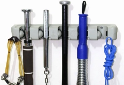 Ten wieszak zapewnia efektywne rozwiązanie do przechowywania środków czyszczących i przyborów w jednym miejscu.